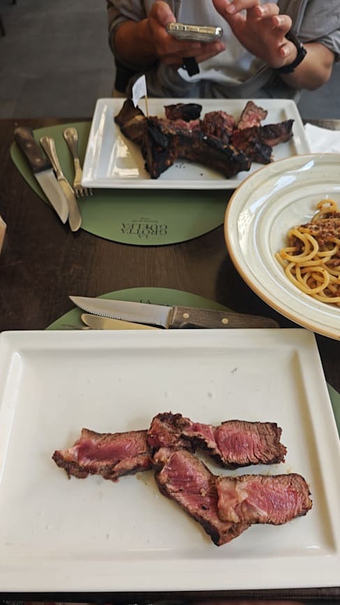 8.5/10Steak 600g well done I ordered Spaghetti Vongole Greca salad, wine, water, and cola. There was a lot of steak, so we shared it. The steak was very delicious and the spaghetti Vongole was also delicious. The salad was fresh and I was very satisfied. However, the staff did not seem friendlyㆍ