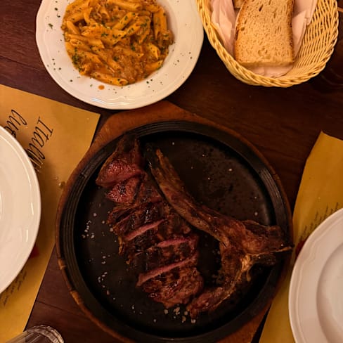 2/10The atmosphere of the restaurant was nice, but the moment we walked in, the staff immediately asked if we had booked through The Fork app. As soon as I said yes, their attitude clearly changed and it felt unpleasant. This was the worst steak I had in Florence – overcooked, dry, and tough. The pasta tasted like it was mixed with store-bought sauce, and there was barely any sauce at all. The spinach dip was watery, as if it had just been heated from frozen. I usually don’t leave bad reviews, but this restaurant was truly disappointing.