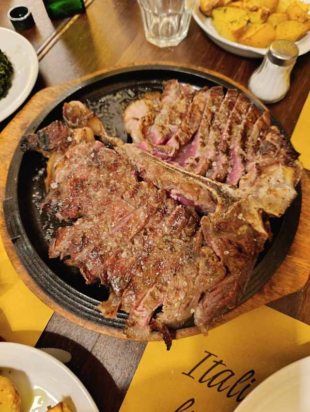 Dear Customer, we are sorry to read about your experience. We would have gladly checked and corrected the bill immediately if you had informed our staff before leaving. Regarding the T-bone steak, we serve certified Chianina beef, freshly cut and grilled to order. We respect your opinion, but we assure you that quality and transparency are always our priorities. Best regards, D.B