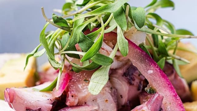 La vibrante combinación de la acidez de la lima con el picor del chile realzará el sabor del pulpo y los gambones macerados, mientras que la cebolla morada, el aguacate premium y los brotes de cilantro aportarán equilibrio y frescura.