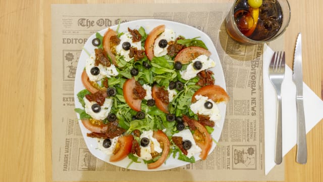 Cocina española, especilidad en ensaladas, raciones y molletes con opciones veganas.