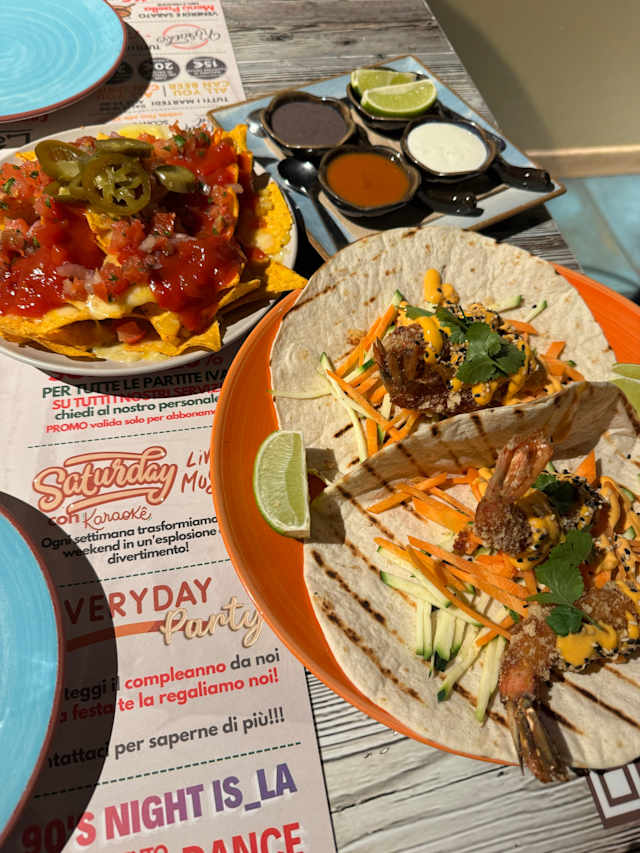 - Tortillas rigide, tartare gambero, burrata, lime, peperoncino habanero e salsa mandarino e tequila