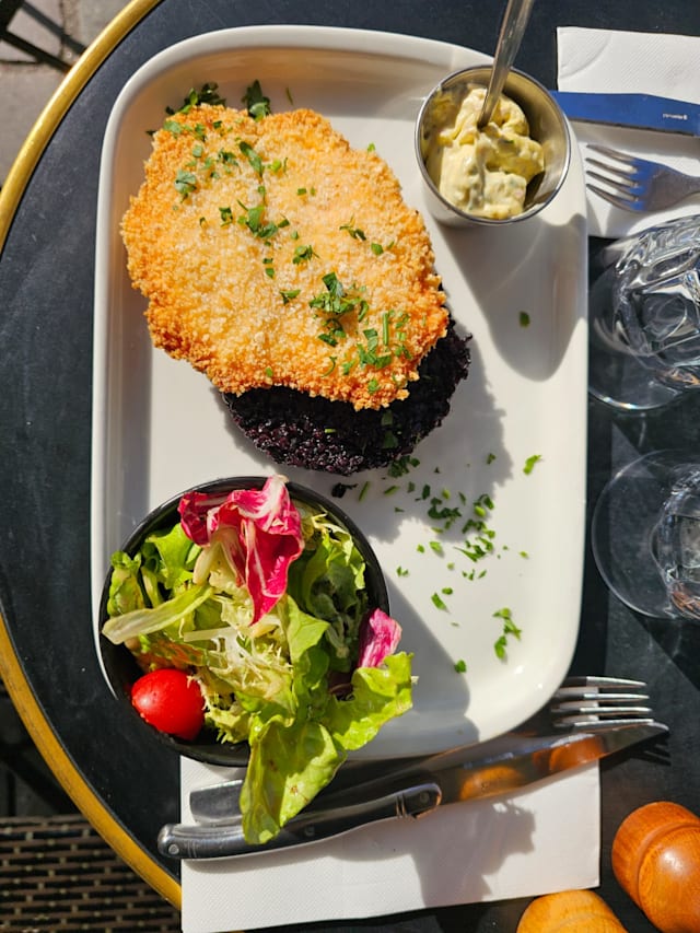- Poulet croustillant, parmesan tomate, œuf, croutons