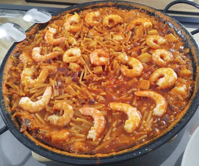 - Tempura de langostinos acompañados de salsa sweetchilly.