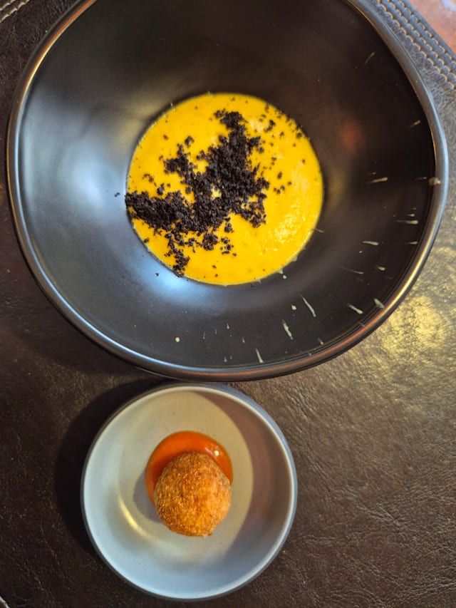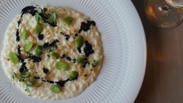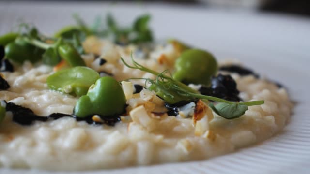 - Risotto carnaroli ʻselezione gazzani’ con zucca ai carboni, cacioricotta stagionato e carrube (consigliato minimo per 2 persone)