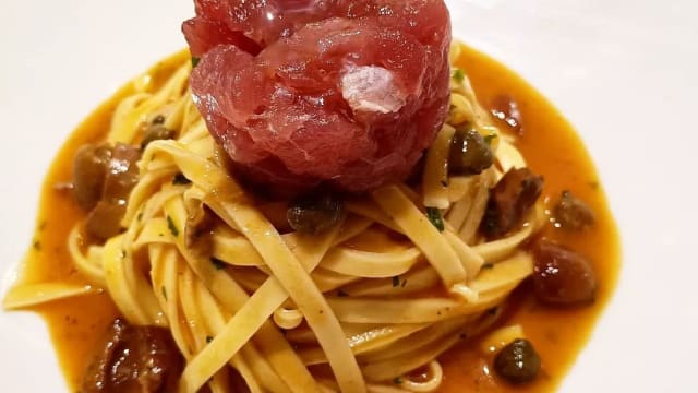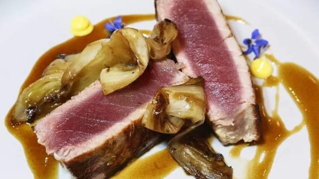 Tataki di tonno, salsa piccadilly e battuta alla mediterranea