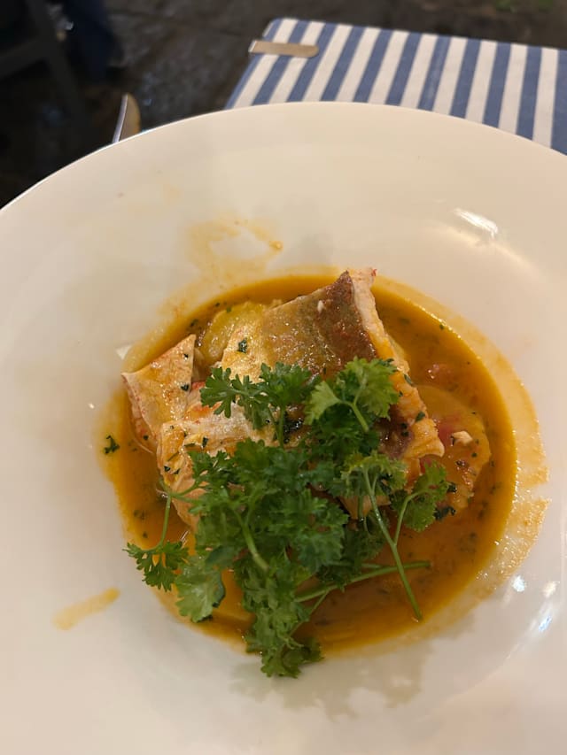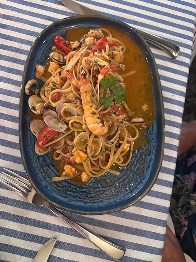 10/10The restaurant is well located and easy to find. We were welcomed and although we had a reservation there were no tables outside which would have been our preference. We were however seated in a nice corner table inside which was very pleasant. The service was very attentive throughout the meal from a team of experienced waiters. The food was excellent and they also had a very extensive wine list which was quite reasonably priced. The local singer entertaining around the tables who had done his rounds on the cruise ships in his younger days really made our evening even more enjoyable.
