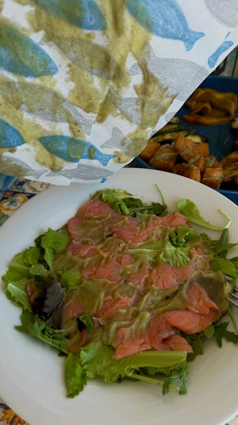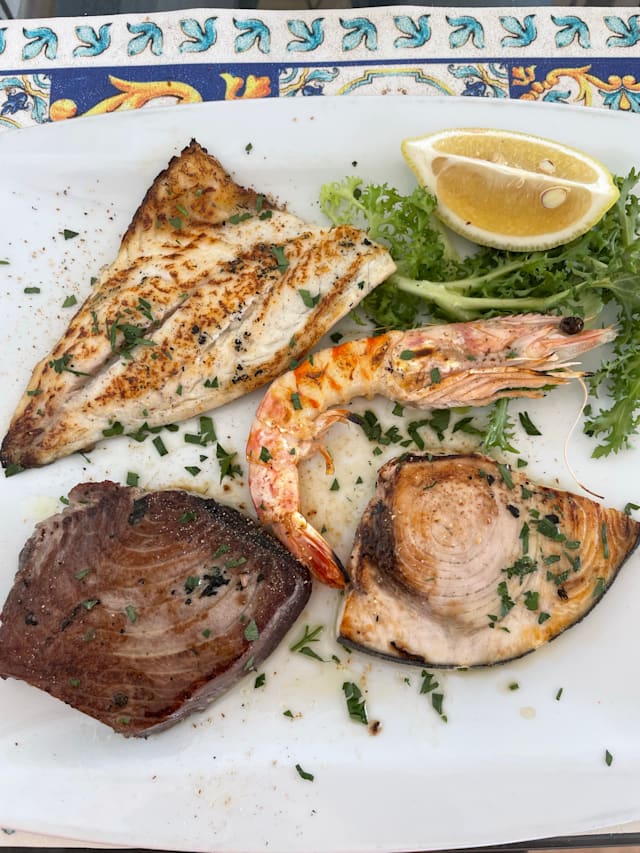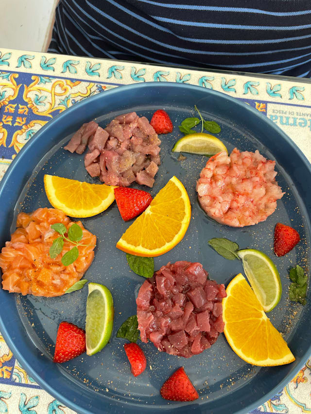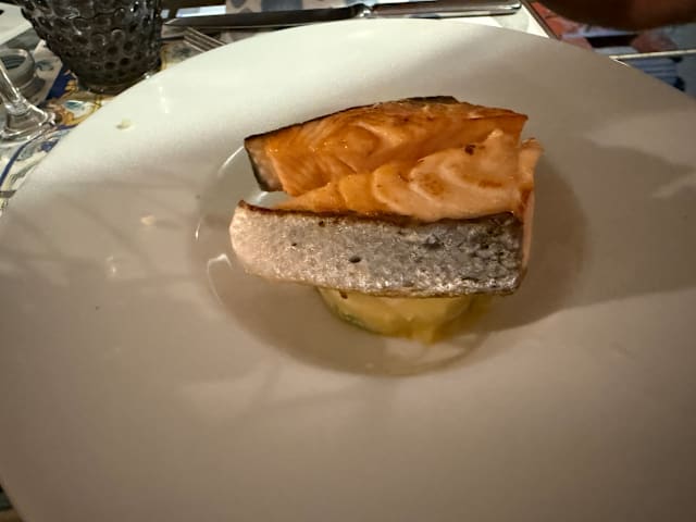 2/10Food wasn’t delicious: grilled vegetables were cold (I accept that usually they prepare it before and hit up before serving, but this time they were cold), salad with salmon was dressed with a sous that looked awful and was disgusting, tagliata di salmone was black from one side and cold inside. I won’t come back there.
