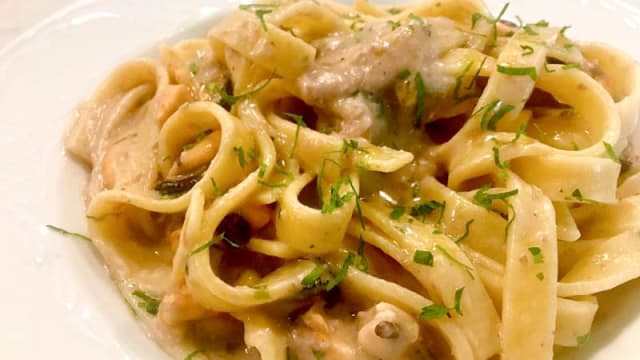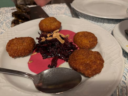 8.5/10Food was excellent. Shared an artichoke app, Had two mains- pappardelle and veal braciola. Then some delicious almond gelato for dessert. Great vibe here. Fun to watch the busy open kitchen (and they were busy on Tuesday eve in November). We had booked some time ago for opening time of 7:30. Husband was a little sad that they serve no beer at all. More proactive help/recs with the all Italian menu would have been nice - but again they were quite busy. Google translate was helpful. Hostess later apologized that they were late receiving English version of their new menu.