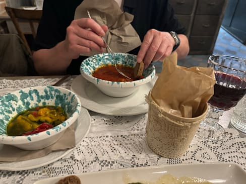 8.5/10Food was excellent. Shared an artichoke app, Had two mains- pappardelle and veal braciola. Then some delicious almond gelato for dessert. Great vibe here. Fun to watch the busy open kitchen (and they were busy on Tuesday eve in November). We had booked some time ago for opening time of 7:30. Husband was a little sad that they serve no beer at all. More proactive help/recs with the all Italian menu would have been nice - but again they were quite busy. Google translate was helpful. Hostess later apologized that they were late receiving English version of their new menu.