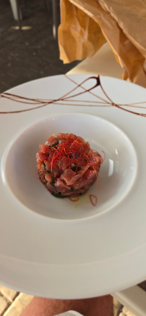 5/10Sadly this was our last meal at the end of a two-week trip in Italy where we were fortunate enough to have some spectacular meals at seriously good restaurants. We stopped here at our way to the airport and order seared tuna served with caponata. It was not possible to cut the thick slice of tuna because it full of sinew and the pieces were very thick. We were unable to eat very much of the tuna. We booked the table before arriving but I do not think the person who greeted us made an attempt to confirm our arrival because The Fork later emailed to question whether we had not arrived for our reservation.
