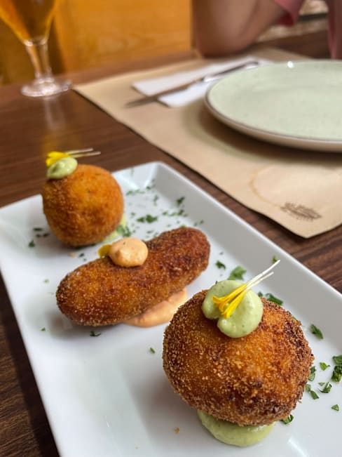 Great food, we had the set menu and house wine. Asparagus starter, black rice paella, and creme brulee. Great value and delicious.