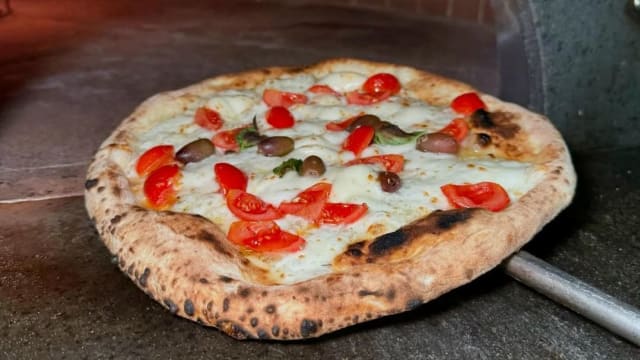 Mozzarella, speck in cottura, gorgonzola, noci, pesto di noci, bufalina dopo cottura