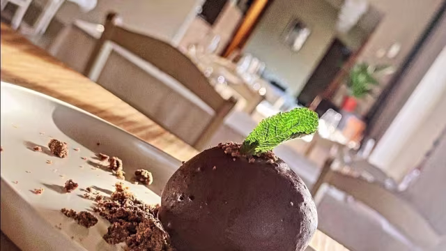 - Tiramisù racchiuso in sfera di cioccolato e crumble al caffe