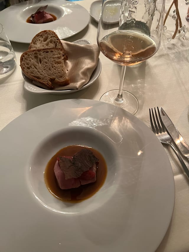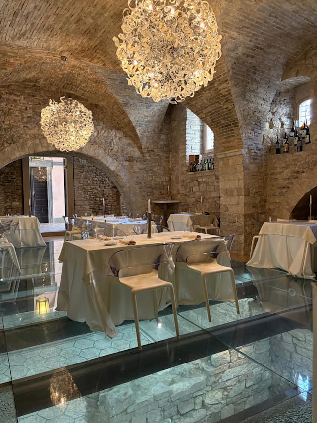 10/10Very unique building with great history to say the least. The glass floor makes for interesting ambionce. Staff is very warm and welcoming. Our waitress was great offering excellent descriptions of the menu. Prompt service. Food was devine. I enjoyed the duck. Perfectly cooked with cherry sauce. A great experience to add another memory of Assisi.