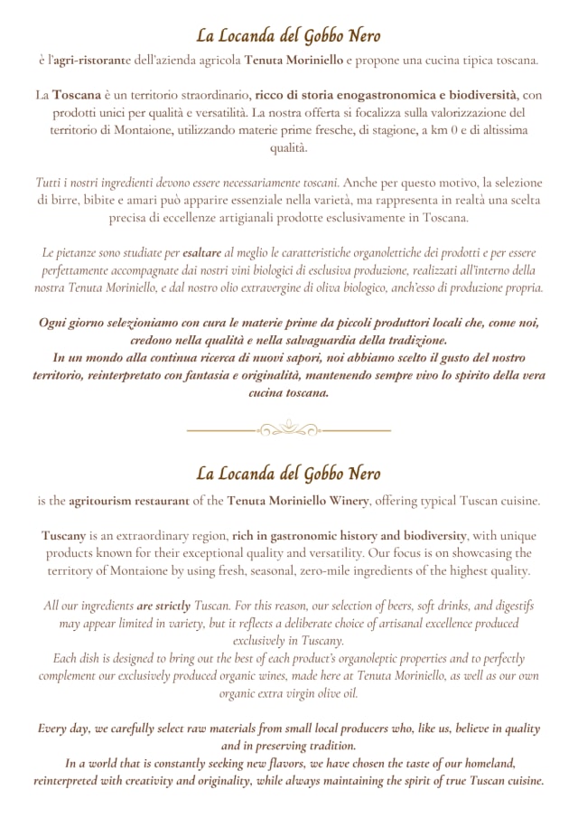 10/10Excellent food, superb wines (we took several bottles with us)fast and friendly service! We will come back definately. A real discovery in Montaione.