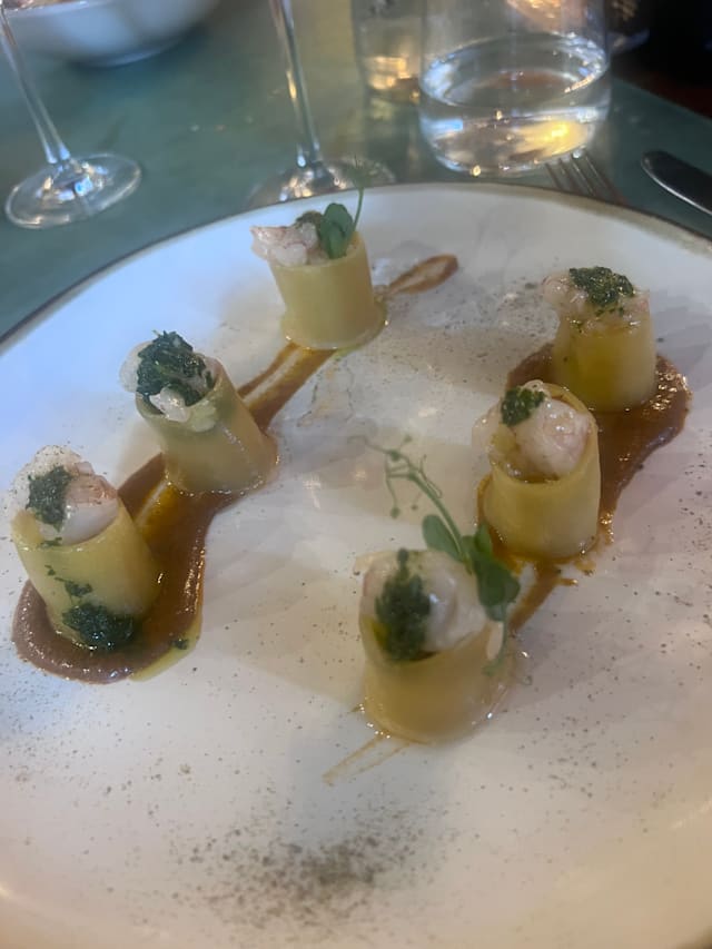 Spaghettone artigianale pastificio Mancini crema cacio e pepe, cozze e salicornia