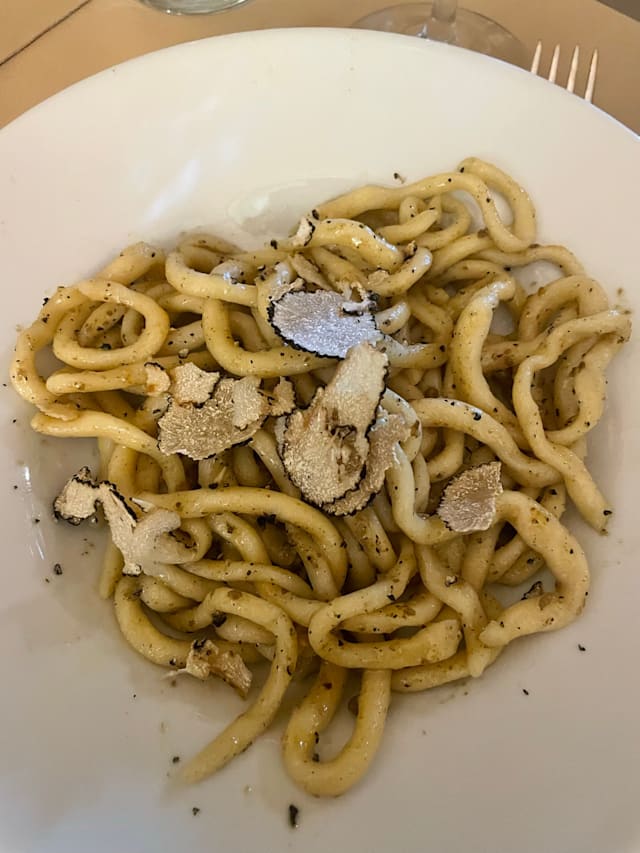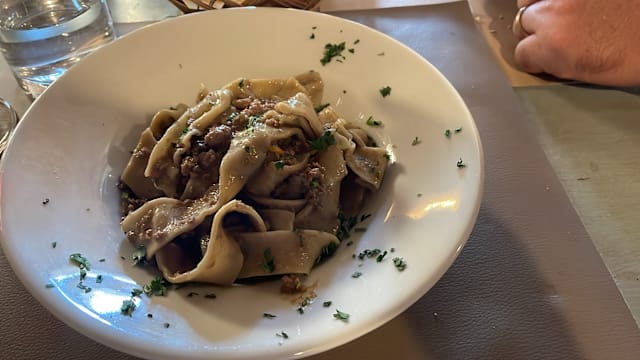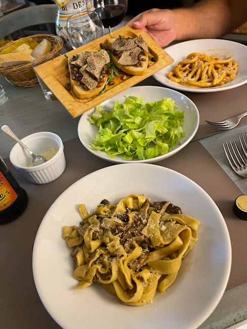 5/10After spending the morning at Scarzuola,a nice young gentleman offered us a flyer with this place and after a 15-20 minutes of driving we reached this little village,the restaurant is indoors,nice decoration but the food was the worst I ve experienced in my 2 weeks in Italy. Pasta was undercooked,not aldente just rubber,the truffle inexistent,the bruschetta was a slice of bread with beans from a can. For 80€ you can eat the best pasta in Italy. I have to mention that my pasta with mushrooms(funghi) were 20€. It wasn’t in the menu. I asked without meat,I don’t eat meat so instead of being less money they charged the top price.No sauce,no truffle.Its a shame because the place is nice and the staff also. They need a good Italian cook. I will never go back. There are so many other amazing restaurant,cucinas in Italy