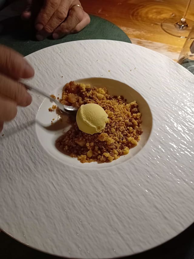 Con cremoso dl zucca al timo, fondo dl amarene e nocciole del piemonte