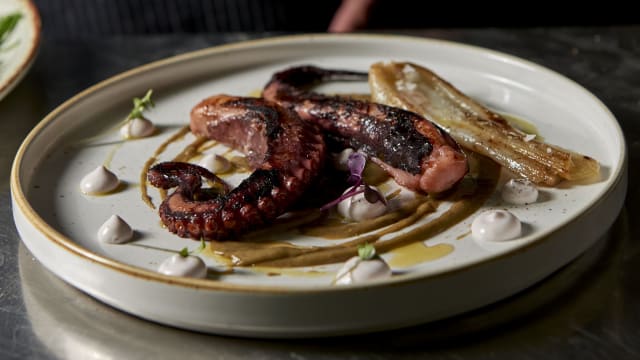 Il polpo grigliato racconta di braci, vincotto e spezie, tra ricordi antichi e sapori vivi.