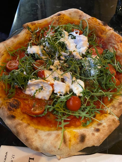 10/10A delicious pizza ! Thin dough and very fresh ingredients, a real Italian pizza!
