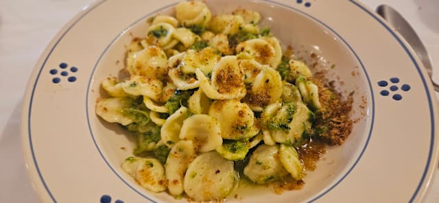 7/10I booked the place due to very good reviews when searching for a great resto in Matera. The antipasti were delicious. For starter/main I order a plate of home made pasta. My favourite tagliatelle were not available and not even the fine fusilli so I had not choice but to order any of the other remaining chor which were all quite thick. I ended up choosing the 4 -finger rolled pasta. I was very disappointed because almost all the customers that arrived AFTER us were all eating the tagliatelle that were presumably unavailable!!
