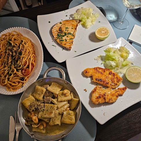 9.5/10We were 4, we had lobster pasta, pasta with pistachio/sea food and pasta with sword fish and tomatoes. Everything was amazing and the portions were really big. The staff was friendly as well. Overall a great experience.