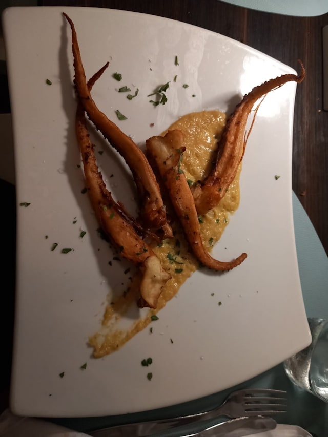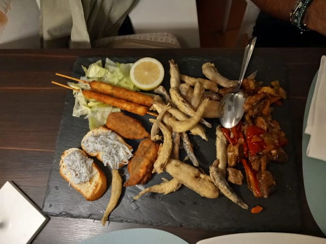 10/10The tasting menu was extraordinary with 7 antipasti with calamari oyster muscles fried sardines bruschetta neonata tuna followed by a pasta then risotto a main and dessert. Bring an appetite and buckle up for a great experience. What you don’t need is a big fat wallet. This was excellent quality at a very low price.