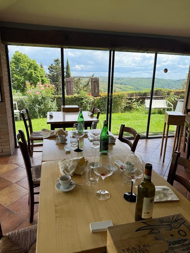 10/10What a gem in Radda! We were warmly welcomed into La Loggia and seated with a lovely view of rolling Tuscan hills. The meal was a new memory for us, with each course a unique but complimentary experience. We will return!