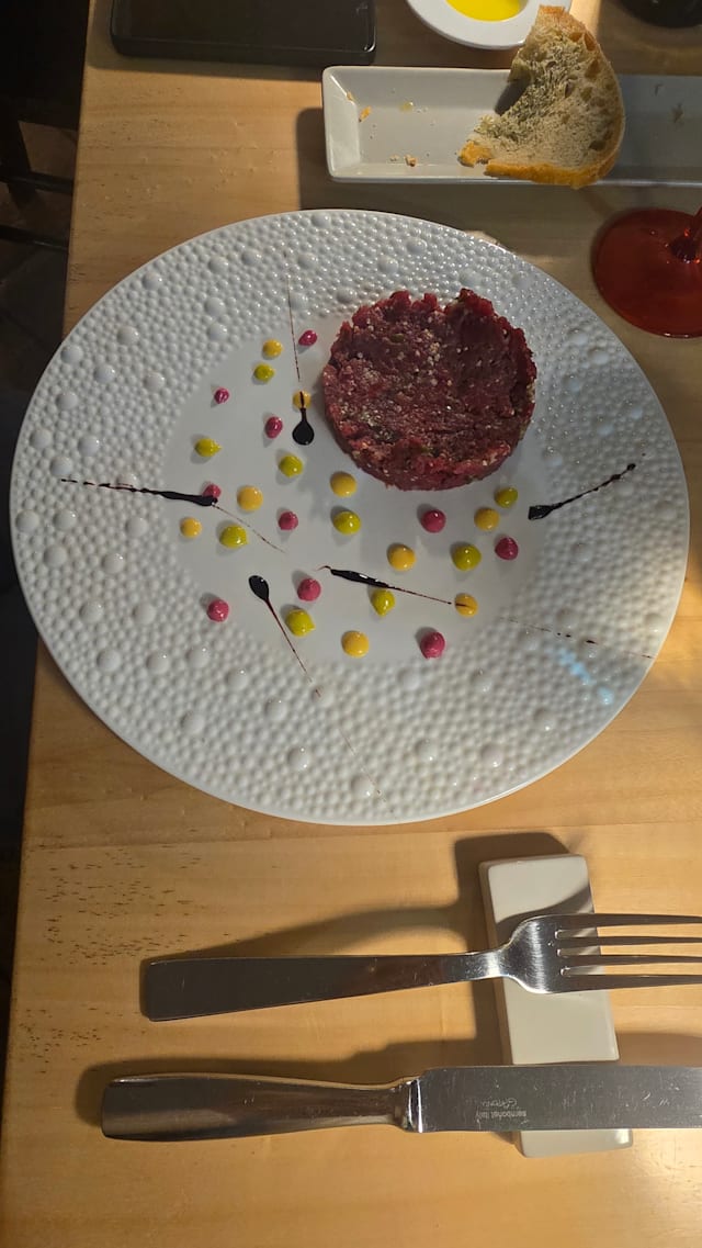 5/10Diner beware. They will tell you they are out of the bottle of wine you choose and substitute it another that is double the price or as the diners next to us half the size. They sell you steak by the Kg. Cut off all the fillet of the porterhouse and charge you for the bone and fat. They do not trim the steak at all. Remember you are just buying a Small New York Strip steak for 75 euros. Theives