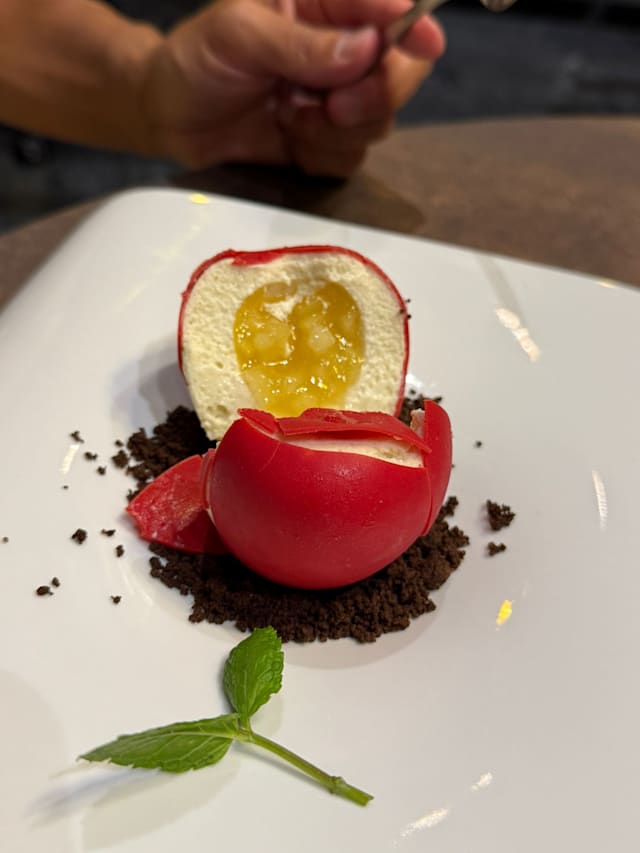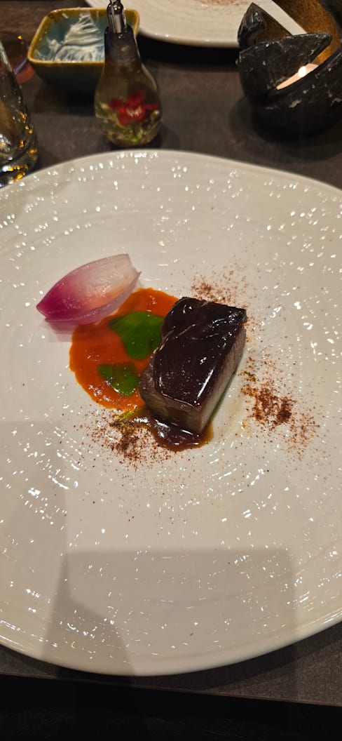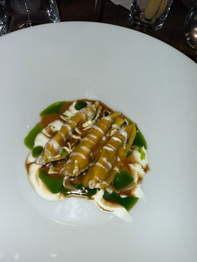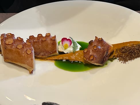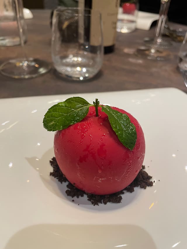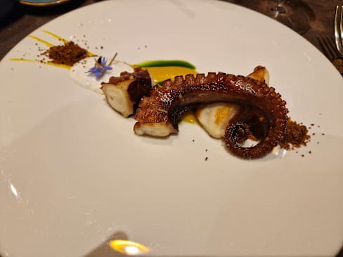 9.5/10We had a beautiful four-course meal here, with eight dishes between us. Seven were excellent. We started with scallops – sweet and perfectly cooked – and cuttlefish, the only dish that fell a little short. Then came a basil risotto, subtle but full of flavour, and quail ravioli with a rich, meaty filling. For mains, the red mullet and duck breast were both cooked perfectly, with deep, confident flavours that let the ingredients speak for themselves. Dessert was a highlight: a punchy Campari sorbet (I’m usually not a fan, but this was different) and a “Forbidden Fruit” - a white chocolate apple with intricate layers and textures that bordered on madness in the best possible way. A meal that reminds you why you go out to eat in the first place. Service also excellent.