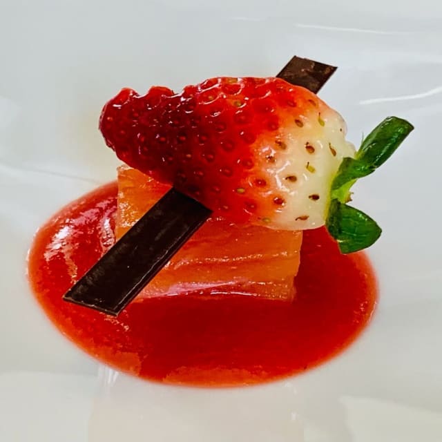 - Piccione, coulis di frutti rossi salsa di foie-gras