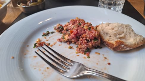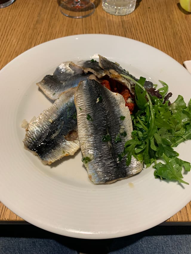 5.5/10Location is great by the center and shops. The service people were all friendly. We ordered full meals - salad niçoise for starter for me, sardine and fish for our dinners and after those courses, we decided to skip dessert. Menu professed “true” Niçoise and so I went for it despite knowing it’s a hearty entree (appetizer). Had no flavor at all. I never add salt and I couldn’t add enough along with copious vinegar. The tuna tasted bland and everything seemed to not have any taste. Super odd. My partner’s fish had many bones and I had much better sardines from a grocery tin. The sardines weren’t prepared well and I felt I was chewing in wooden toothpicks with specs of fish. I’d go there for cocktails and maybe some snacks for a happy hour. But our food experience was off for sure.