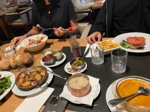 8/10A bit expensive without the discount. Bench has bread crumbles from the previous guests. Food was good but portions to be desired.