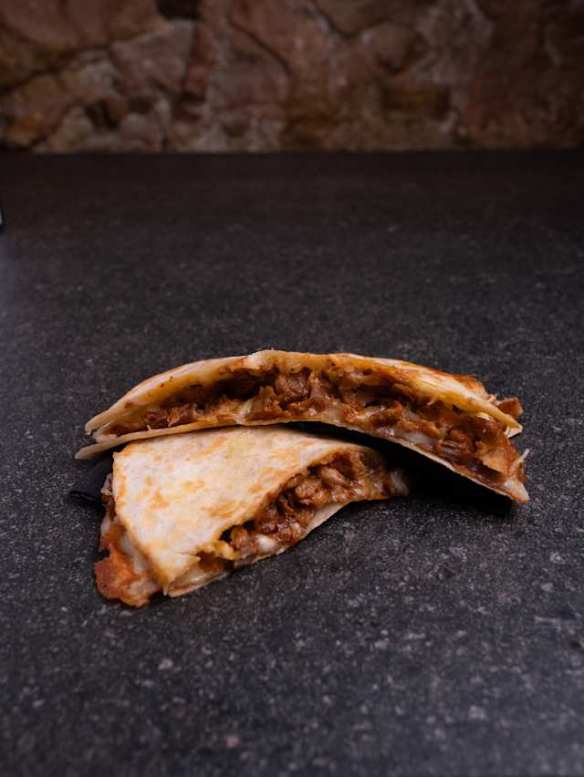 - Dos tortillas de trigo, queso fundido y tu relleno favorito que se derrite en cada bocado.