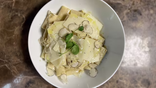 - Rigatoni au caviar d'aubergine, poivrons et tomate