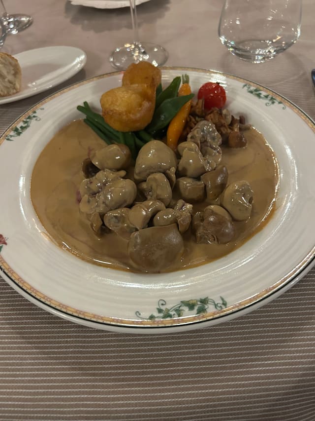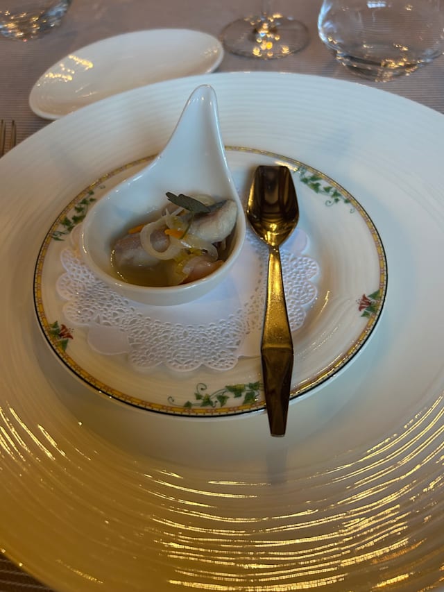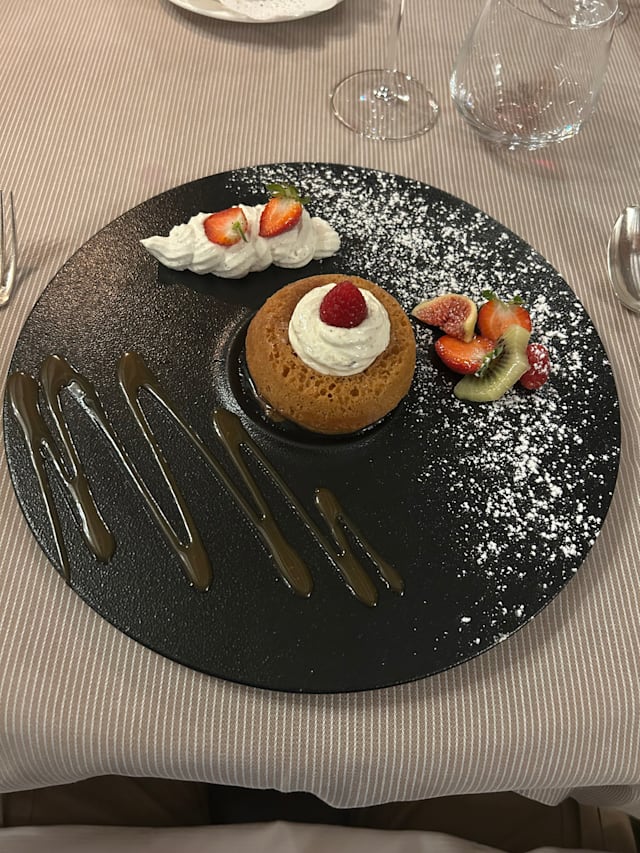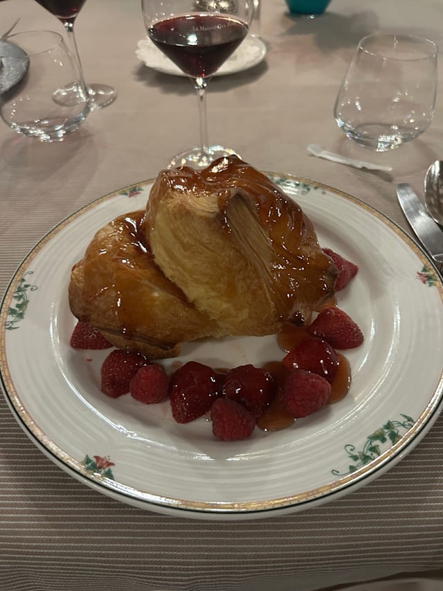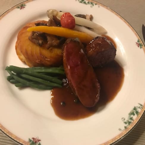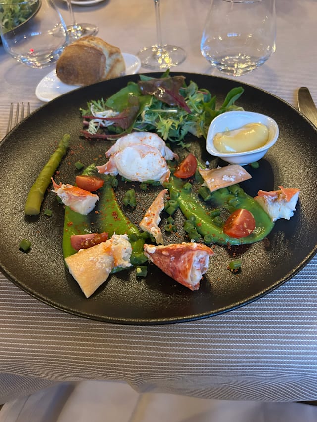 10/10I am definitely a foodie and live in a big food city. This was one of the best meals I’ve ever had. The ambiance, the service, the food itself and the wonderful staff that was so patient when I tried speaking French (they were trying to speak English)! We had champagne apéro to start with lobster bites. Then an amuse bouche of gazpacho with gambas. Started with foie gras pâte that melted in your mouth, my husband had the lobster salad with very generous pieces of lobster. My main course was navarin de homard (lobster stew), again with a large amount of lobster and a to die for sauce that had to be sopped up with bread. Husband had melt in your mouth filet de boeuf. Dessert was profiteroles for me (but served on a warm plate to keep the chocolate sauce warm), and husband had feuillettes with strawberries and raspberries. I drank viré clessé, husband drank a Pinot noir from Loire. Still more petit fours to end the meal. I cannot recommend this restaurant enough for a special occasion. Look for the family dogs roaming the property (which is also gorgeous). They look a bit scary but are very friendly.