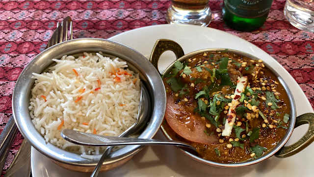 - Curry d’épinards avec du fromage et à la crème fraîche. Services avec du riz basmati ou naan nature.