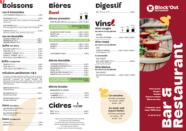Consultez notre carte de plats du moment.