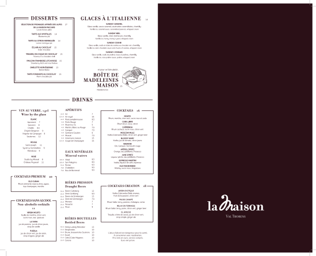 10/10This restaurant was far better than it looked in all respects just looking at it from the outside. It was a great venue for a special meal and the serving staff were charming if not all of them were that fluent in English. Every dish was easily as good if not delightfully superior than one might expect from an apres ski venue in such a touristy spot. We ate at more traditional “Savoyard” type establishments in Val Thorens which were dull and no better than they should have been. This was all the more refreshing as a result. We nearly skipped the desert menu but were so glad that we didn’t when we all shared three knock out deserts. Especially memorable was the refined Raspberry, Lychee and Rose essence infused Pavlova and of course the beautifully presented Baked Alaska served with flamed brandy. The clientele were as charming and as well turned out as the many agreeable looking waiters and waitresses. Bill was €92 a head for a full three course meal with 2 bottles of Macon Chardonay.