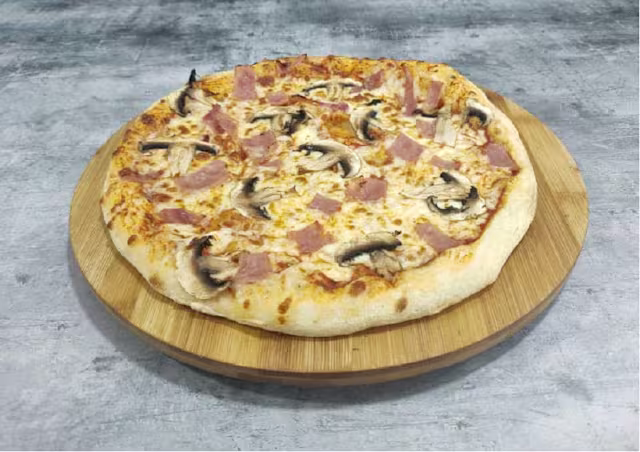 - Crème fraiche ou tomate, mozzarella, jambon de dinde, champignons, oeuf, fromage rapé.
