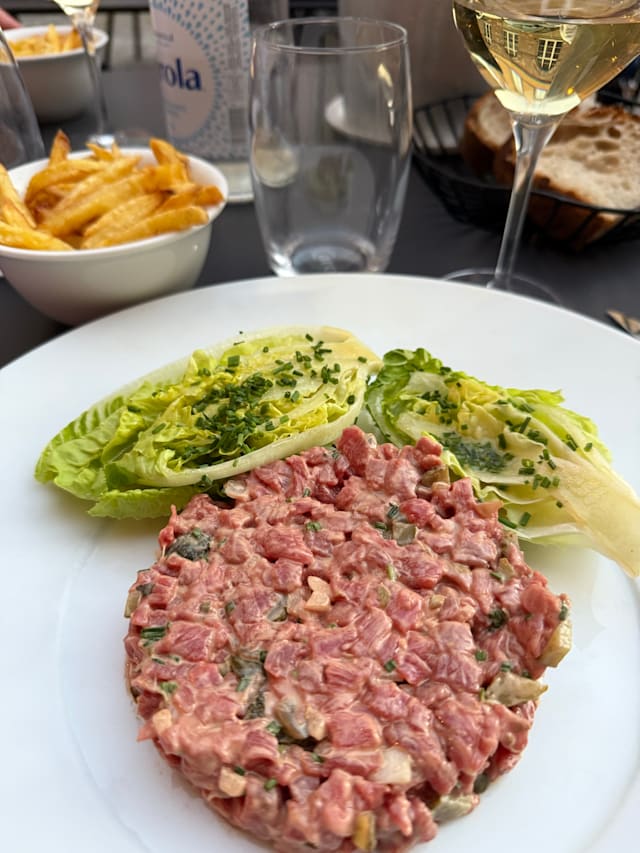 2/10stay away from this place. we waited 30 mins for the waiter to take our orders. and starters were served after another 30 mins. when the waiter came to the table to collect plates from the starters we asked if they could speed up the mains, to which he said he had already asked the kitchen to prepare mains. yet we had to wait another 30 mins despite 3 out of the 5 mains being tartare. when we asked for bread they served half bread almost as if they took it from another table. prices are extremely expensive for the quality you get (45€ for a small/medium sized tartare, local wines way overpriced). just avoid this place