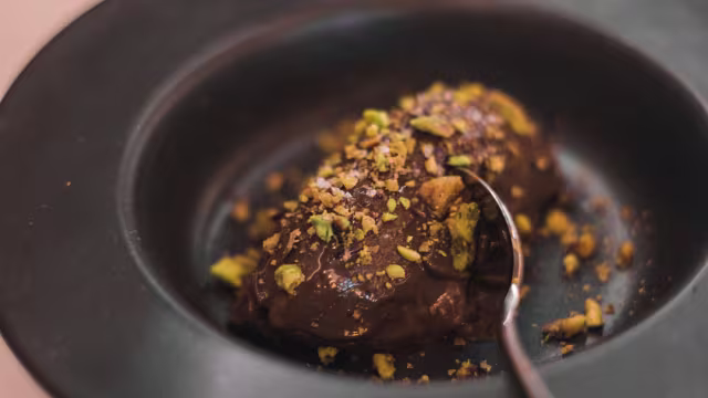 - Chocolate 70% cacau, flor de sal e praliné de pistáchio