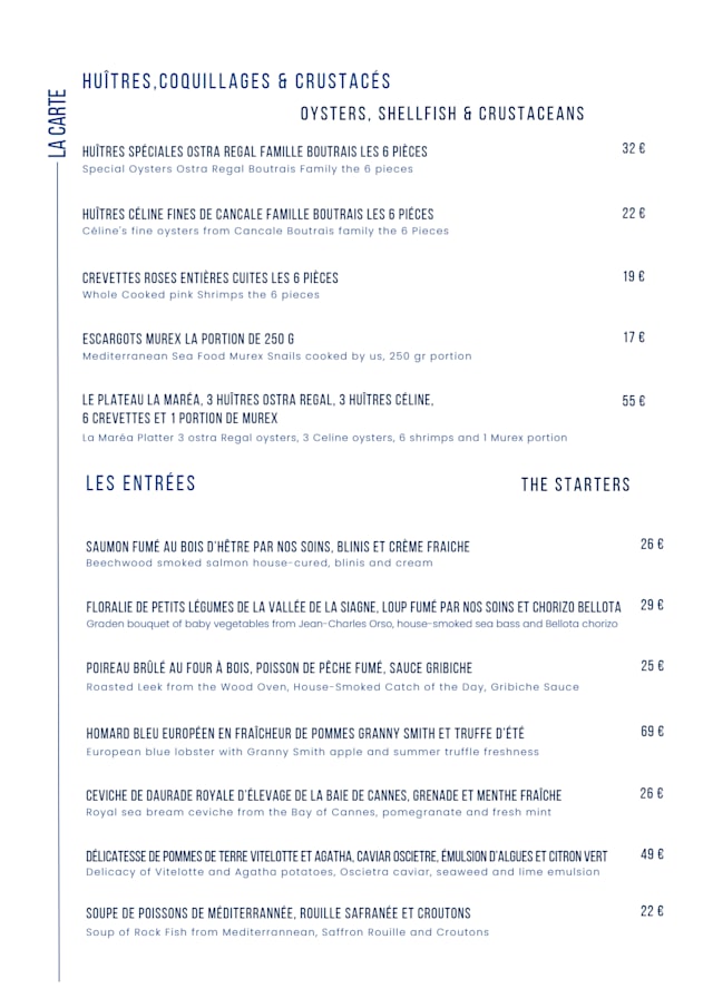9.5/10We always enjoy La Marea. Of course the setting is gorgeous, with uninterrupted views over the Mediterranean, but it’s the people and the food that make it so special. The Directrice is just wonderful, warm, welcoming, professional of course, but she creates a lovely atmosphere. Her team follow her lead. And as befits a Michelin starred restaurant, the food is delicious! Very ocean based, but there are alternatives for those who choose not to go for the fish and sea food. We particularly appreciate that the dishes are lighter than many in that part of the world. To our mind, the warm weather, hopefully eating outside, though not last night, suits a fresh, light plate. We had some diving pink prawns, my husband loved his oysters, and both our main corses, John Dory and Monk Fish Cheeks, were flawless! We were so enjoying our evening, that we shared a cheese plate as a third course, which we almost never do! Thank you all, we will be back when we’re next in our nearby apartment!