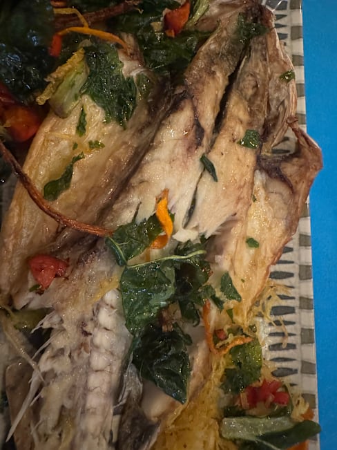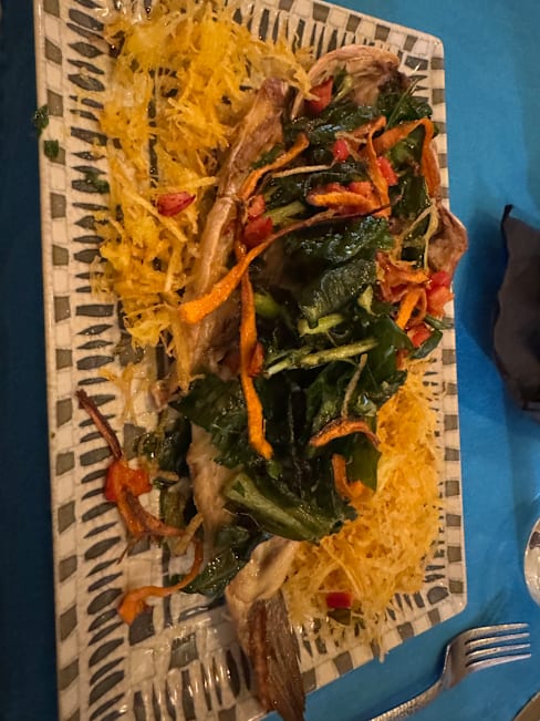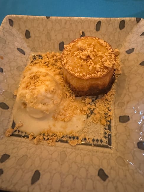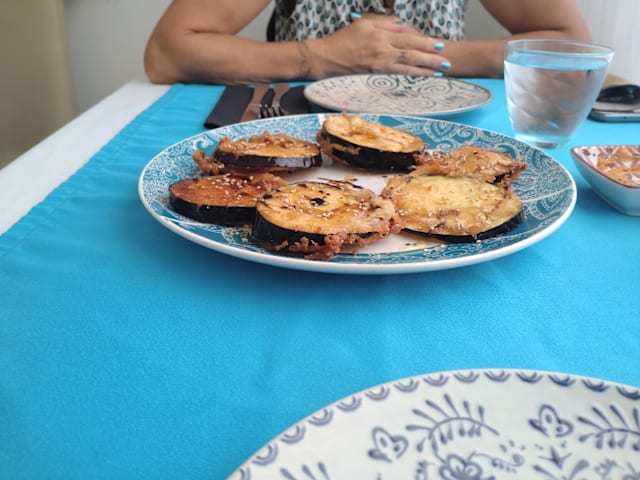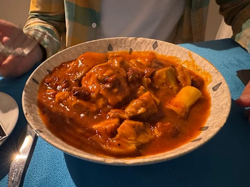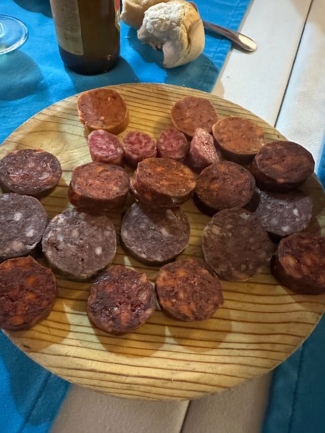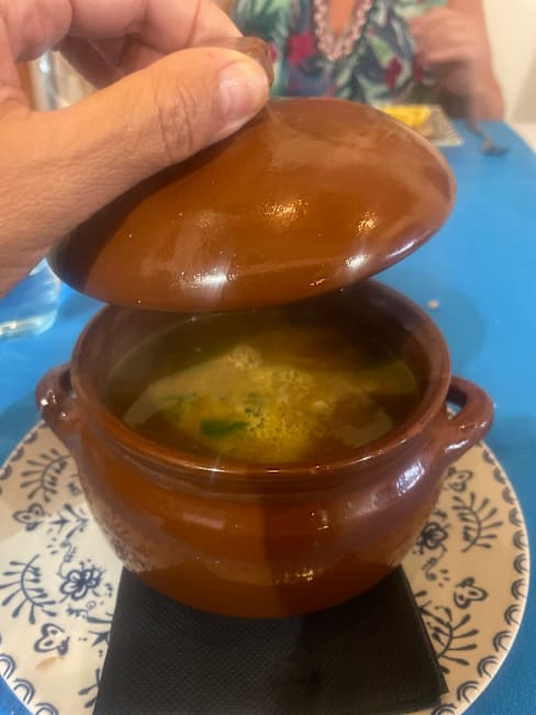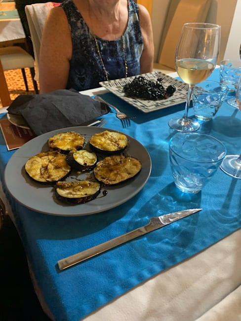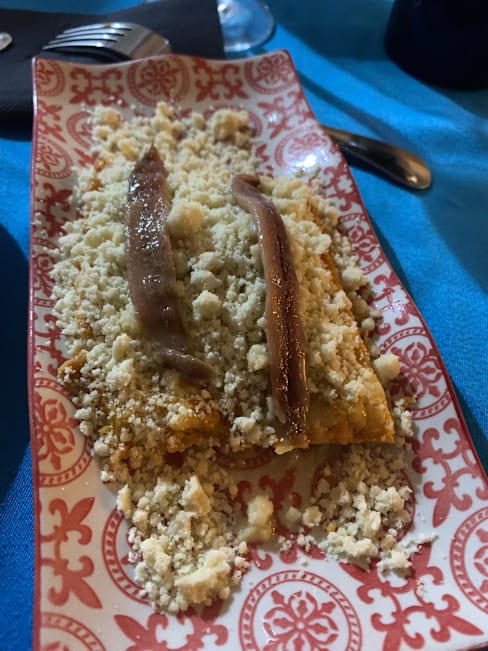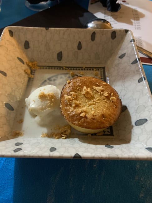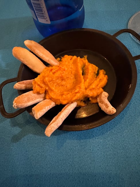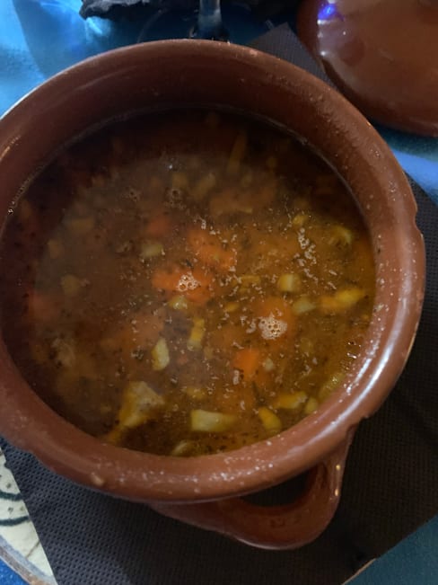 8.5/10Coca is a kind of crumbly biscuit with toppings like anchovy or smoked eel. A local lentil and vegetable soup came in an earthenware pot. A local sheep’s cheese was strong and served with raisins. One dessert was a kind of brioche bread soaked with red wine and an ice cream made with another kind of wine. ( no photos as phone died ).