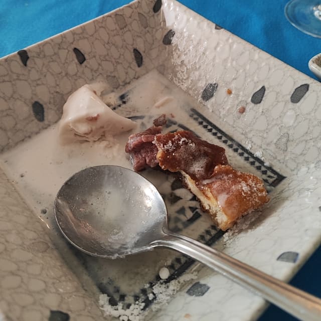 10/10+1La Marmita Alicantina was a great place with excellent food and service. To start I had the garlic prawns with a fried egg. This was a delicious dish with crusty bread to soak the garlic oil with a hint of chilli. For my main course I had the sea bass with swiss chard. The fish was cooked to perfection and tasty and delicious. To finish I had the nougat pudding with ice cream and the pudding was delicious and not overly sweet. The service provided by Roberto and his colleague was attentive but not overly intrusive which is the way that I like it.