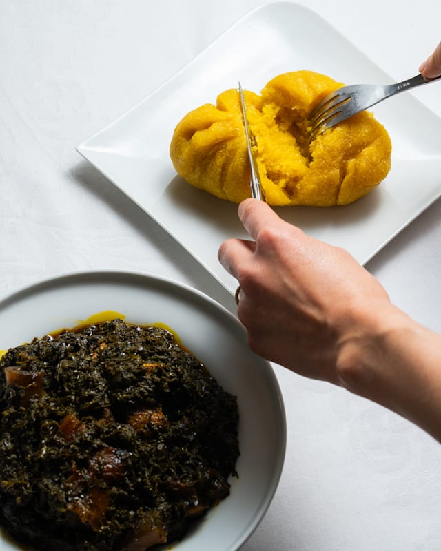 Poisson délicatement mijoté dans une sauce tomate relevée aux épices camerounaises. À déguster avec du riz, des plantains ou du bâton de manioc.