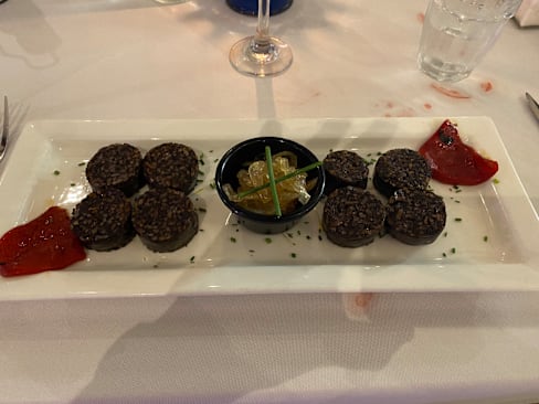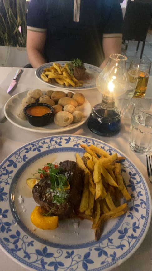 6/10Starters good - prawns , mushrooms and bruschetta Chateaubriand ok -side of chips seemed frozen but ok Bill took ages to come had to ask for it 5 times very busy restaurant not enough staff. Accidentally overcharged us by 50 euro but we noticed this and it was refunded