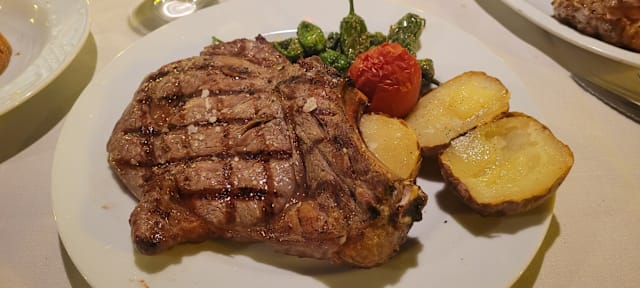 10/10Dining in a beautiful garden of vines with the delicious porky tree of hanging cured meats that comes to your table so you can cut off what you like. The service and meal was remarkable. Do not miss the shrimp appetizer and mains.
