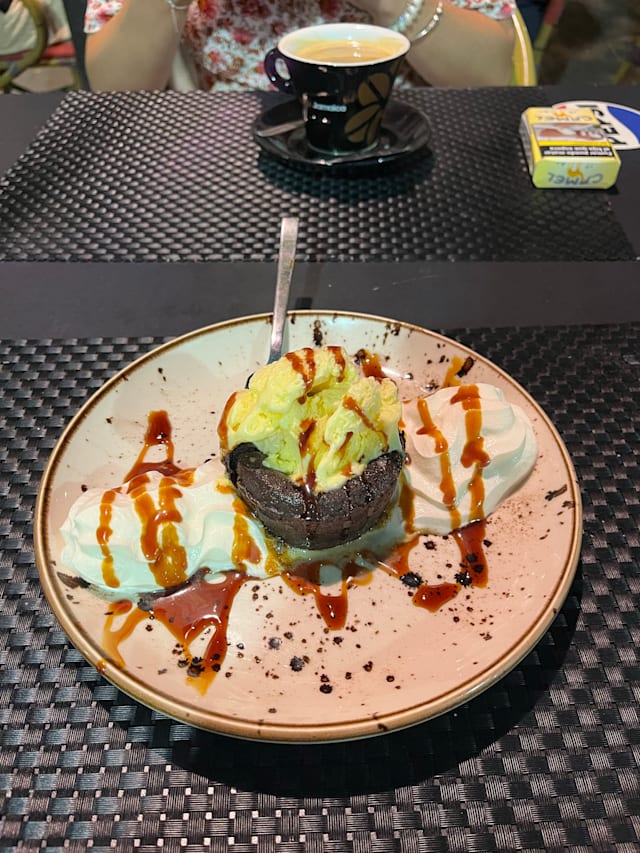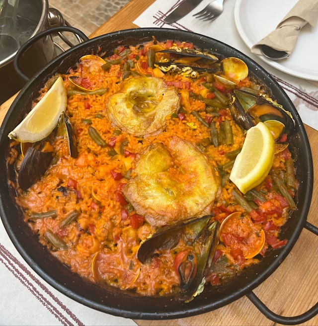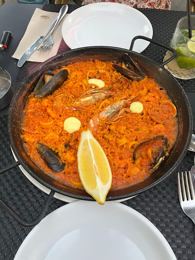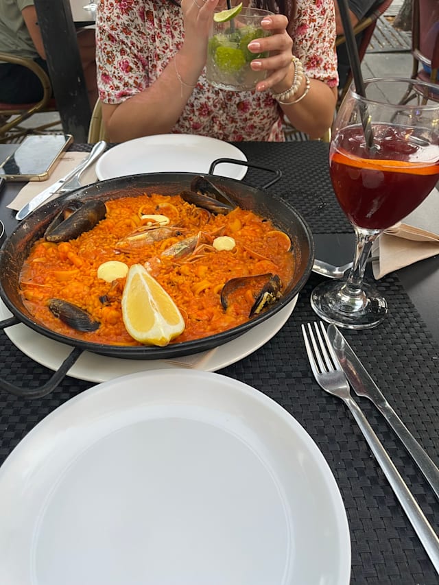 8/10A pleasant visit with decent food and nice ambience. The restaurant was nearly empty when we arrived and were seated immediately. We initially ordered fish soup (for both), octopus, and sea snapper mains. However, 10 minutes later, while heading to the restroom, a waiter quietly informed me that the fish soup was unavailable—odd, as they’d let us order it and hadn’t approached us earlier. We replaced it with Salmorejo (delicious!) and goat cheese starters. The mains were tasty, though not outstanding. For dessert, we had vaisitos with cheesecake bases and vanilla ice cream—again good, but not exceptional. Service was mixed: sometimes a 10-15 minute wait between courses, and it took a while to catch someone’s eye to pay (had to remind them of the fork discount). Restroom had soap, clean, but water all over floor .Clearly a place that gets 'busy' (and we were there when not busy). Overall, a decent meal in a pleasant setting and would return.